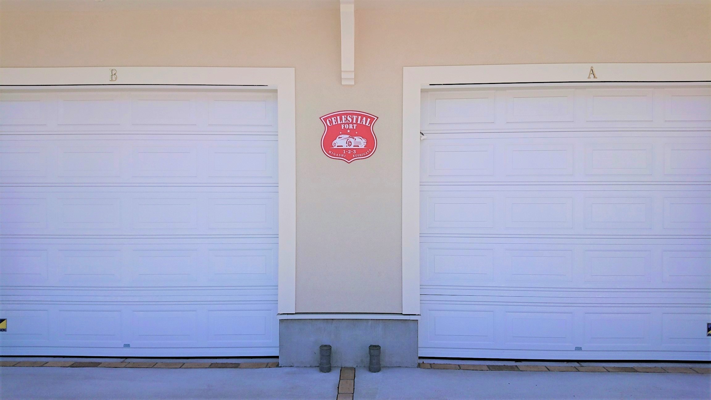 アメリカンなデザインの電動式ガレージシャッターをご用意。ALSOKセキュリティも導入し、あなたの愛車をしっかり守ります。