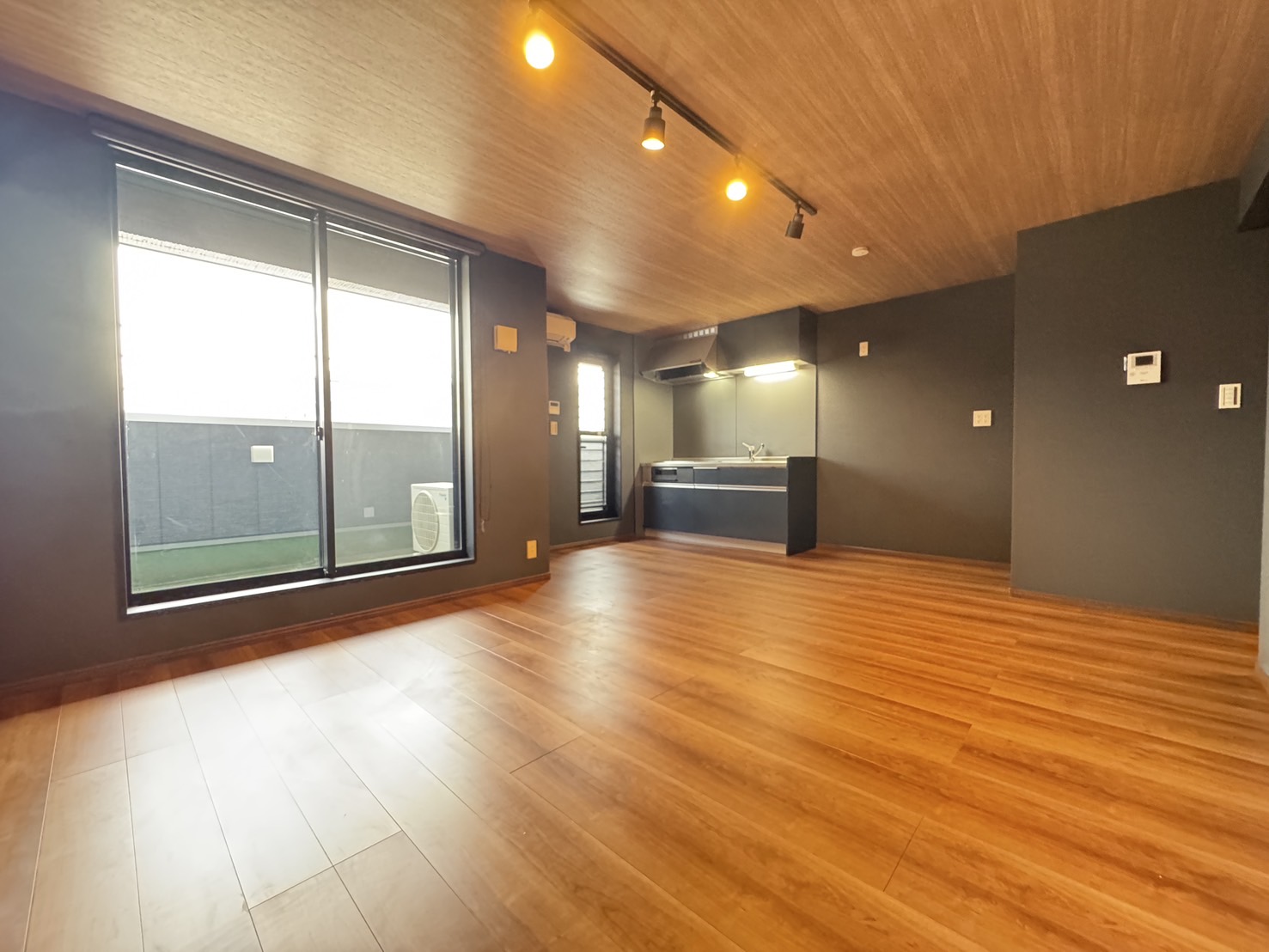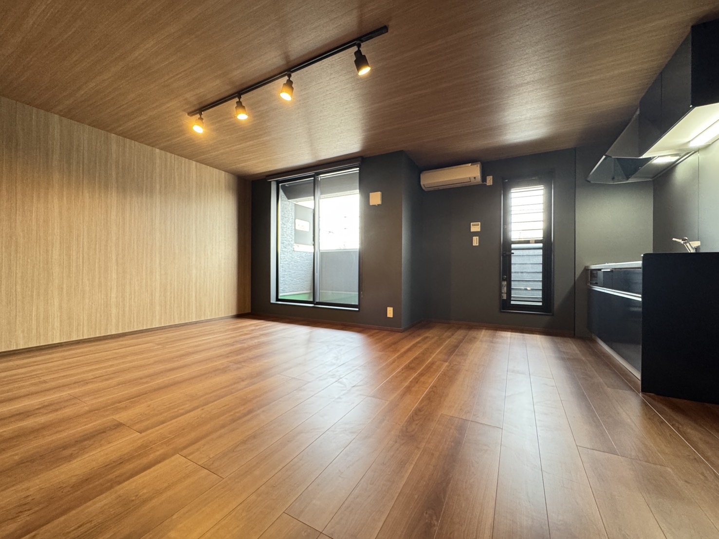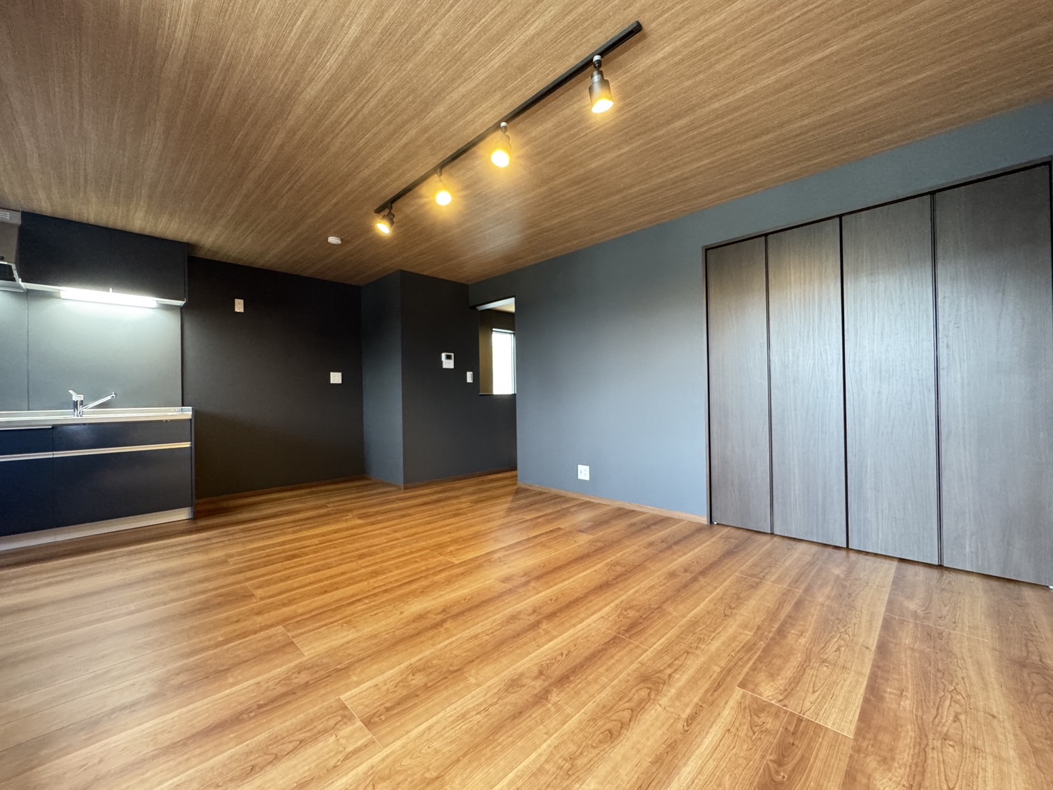 • 間取り:メインのリビングは、シーリングレールで可動式のスポットライトが、オシャレかつ機能的です。