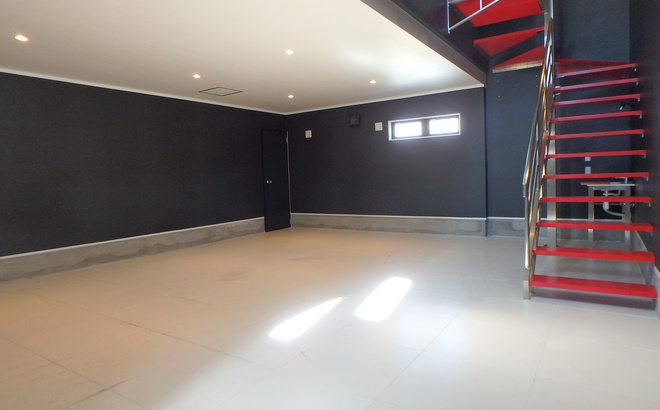 この賃貸ガレージハウスは栗橋線に簡単に出やすい魅力的な立地、伊奈町栄町にあります。