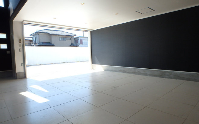 ほとんど音もなく、柔らかくスムースに上がってゆくゲートはこのガレージハウスの入居者の優越感に浸る第一の場面です。