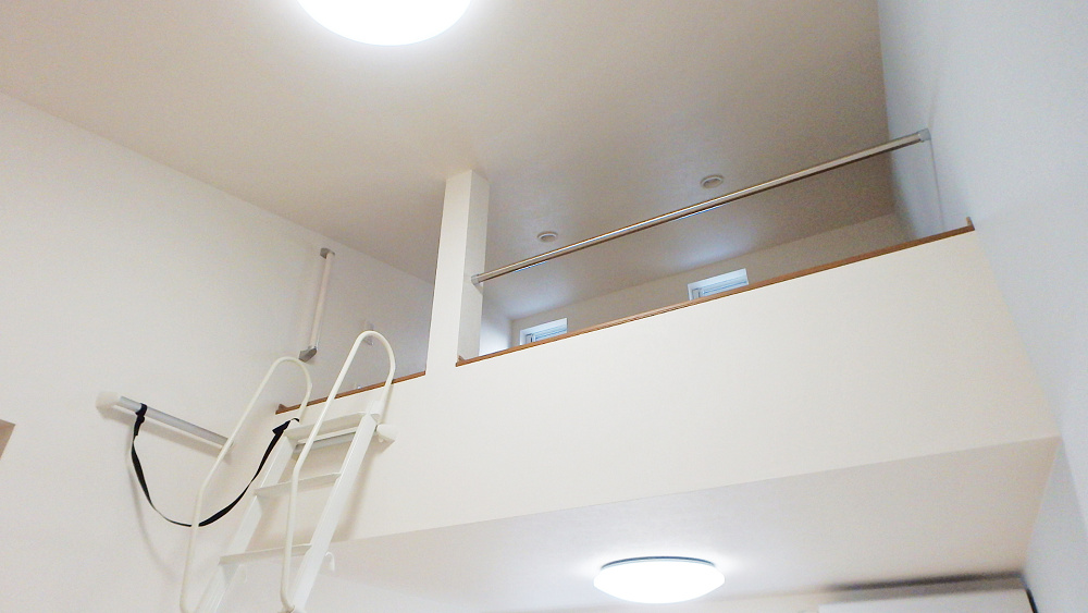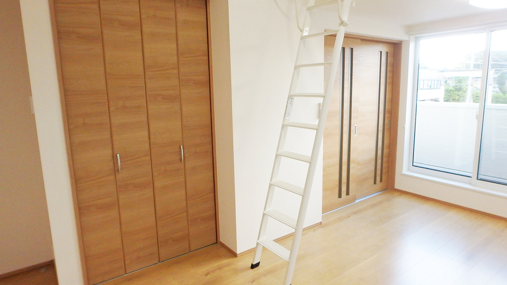 3帖のコンパクトスペースがあり、寝室にも、大型のクローゼットとしても住まう人の好みによってご利用可能です。そして、もう一つの特徴は、ロフトです。リビングに生活感をなるべく出さないようにするために、細かい荷物はロフトに収納したり、使い勝手は多岐にわたります。